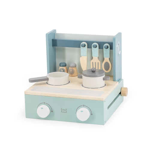 Label Label houten speelgoed is gemaakt van FSC gecertifieerd hout. Een duurzame lijn en "must have" voor de hedendaagse bewuste ouders die denken aan de toekomst van onze kleintjes! Wat is lekkerder dan home made cookies of gebak? Met de Label-Label food processor zal jouw kleintje zijn of haar lievelingsgebak met veel liefde voor je klaar maken. Deze foodprocessor en accessoires werden vervaardigd uit kwaliteitsvol FSC gecertificeerd hout en voorzien van een prachtige kleur met behulp van kindvriendelijke verf op waterbasis. Mixen, mengen, kloppen, roeren, noem maar op, alles in een hand omdraai met de Label Label foodprocessor want de klopper wordt bediend door aan het wieltje te draaien. Uw persoonlijke bakker(in) zorgt voor heerlijke muffins met de mooiste toppings. De “real” look en werking van de foodprocessor zal kinderen ongetwijfeld aanzetten tot rollenspelletjes. Dit stimuleert niet alleen hun creativiteit en verbeeldingskracht, ze leren ook hoe te interageren en oefenen hun oog-hand coördinatie. Deze food processor past perfect bij de Label Label keuken en toebehoren.